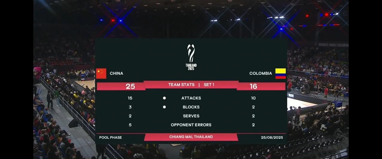 中国女排度过开局不利,中后局强势逆转,首局25-16战胜哥伦比亚。 首局比赛一开场,中国队利用李盈莹的强发球轮,连续拿下5分,以5-0领先哥伦比亚。但是顽强哥伦比亚队也利用强发球轮连续拿下7分,以7-5反超中国队,并一路领先到12-9。此后,中国队如梦初醒,打出一波6-0攻势,将比分反超为15-12,之后中国队不再给对手机会,以25-16拿下首局胜利。 从场面上来看,哥伦比亚和中国队实力差距明显,不出意外,中国队将3-0完胜,顺利晋级16强。