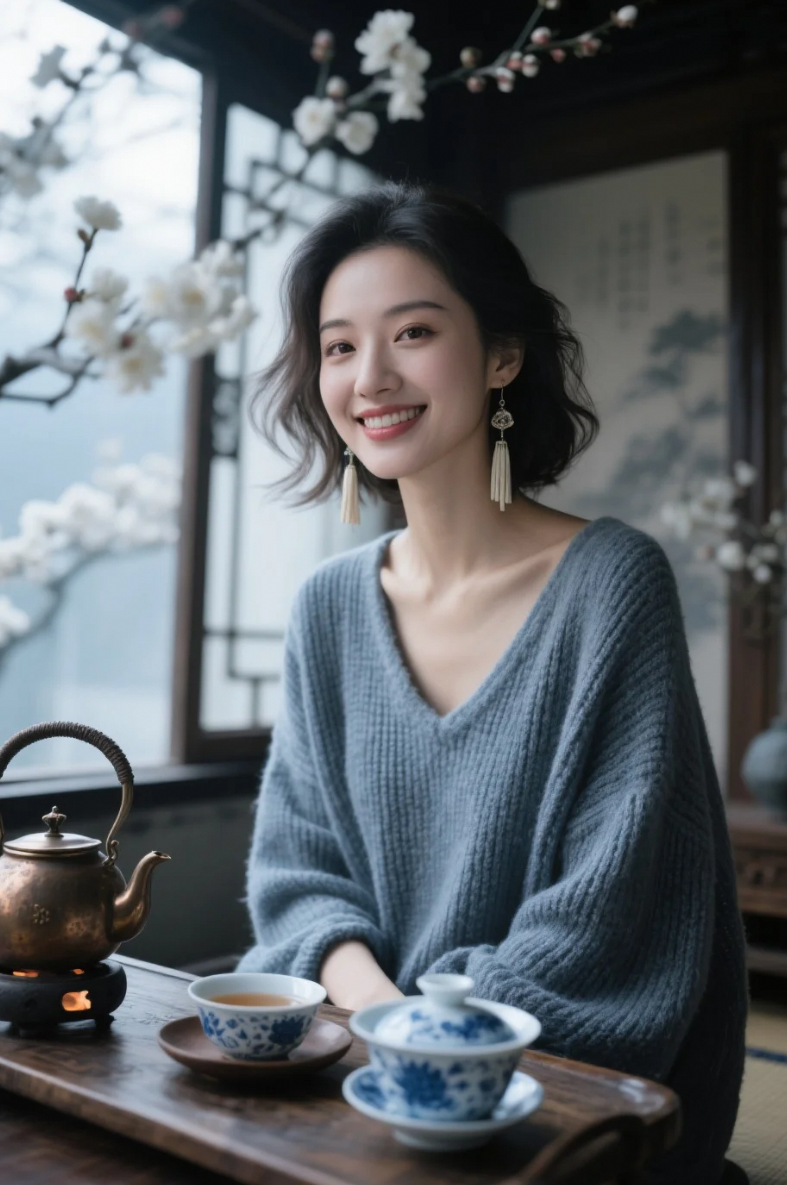 窗外梅花落,炉上茶烟起,她一笑,便是人间清欢