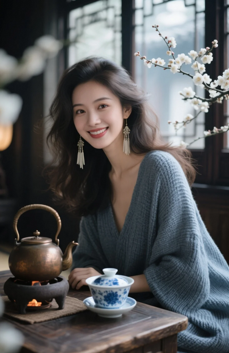 流苏耳环随动作轻晃,是寂静里最温柔的响动