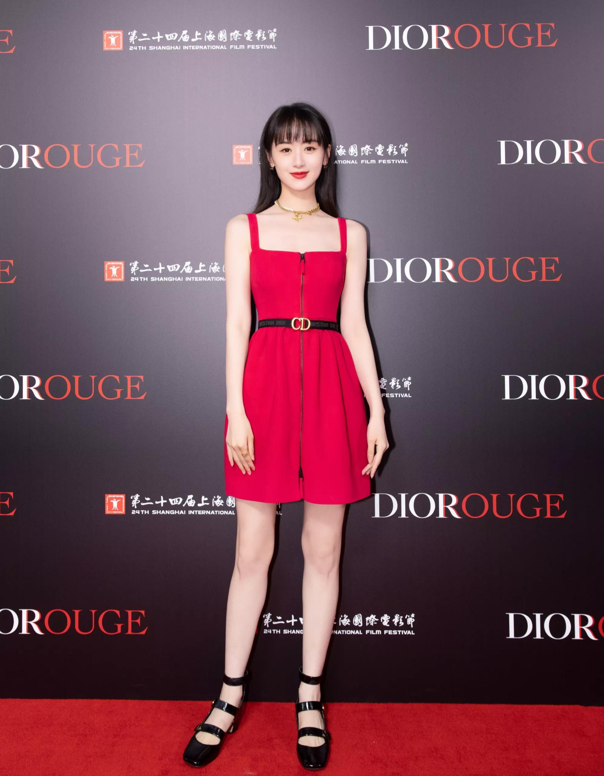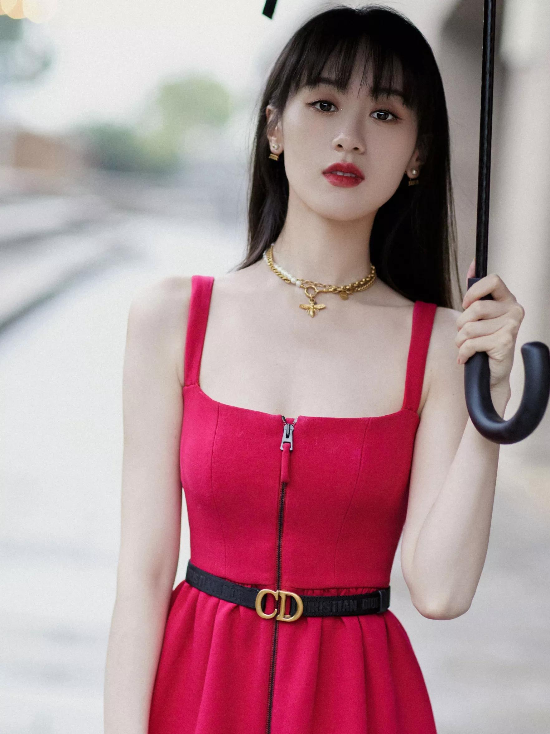 袁冰妍红色一字裙写真:惊艳又魅力的女星