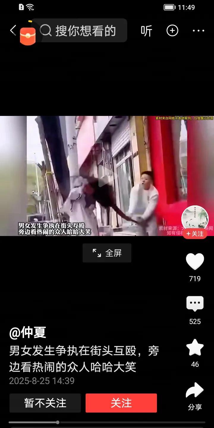 一对情侣当街互相殴打,男子不停地用拳头捶打女子。女子力气毕竟较小,自始至终都未能占得丝毫上风。就这场互殴而言,从绅士的角度来讲,男子确实不该当街对女子动手。不管孰是孰非,男子动手打女子就是错误的。女孩要是遇到这样的男人,就应当果断分手,以防日后出现家暴行为。男女互相殴打,女子也不是好惹的,只见她操起扫把,不停地拍打这个男子,看来这位女士也是个厉害角色。究竟谁对谁错?唯有他们二人知晓。