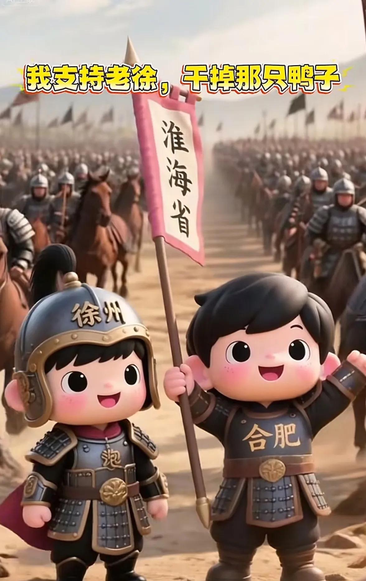 苏超南北争霸赛变成了安徽内战,合肥站队改变战局,徐州带领淮海创业集团意欲打过长江去。皖北宿州、淮北、阜阳、亳州、淮南、蚌埠积极响应,派兵出战。皖南芜湖、马鞍山、滁州早被南哥纳入麾下。正当势均力敌的时候,合肥出手改变战局,徐州胜!