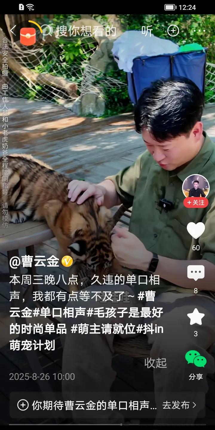现今的曹云金相较当年的郭德纲有过之而无不及,郭德纲不过是养养狗罢了,瞧曹老板都养起小老虎了,这可比他曾经的师傅强多了。