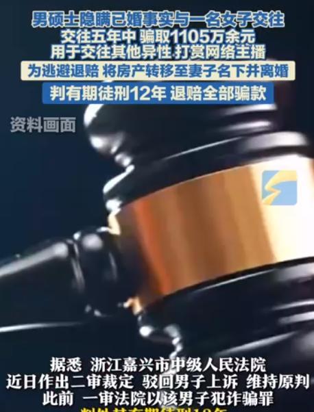 嘉兴一男子婚内出轨,妻子却感动不已,因为妻子不知道,男子骗取了情人1105万元,而男子除了给妻子转生活费外,大部分都用来挥霍了,当被发现后,男子将房产转到了妻子名下,便提出独自一人承担债务! “我把钱都给了你,可我的爱却只能给另一个女人。”这句话,或许正是李某(化名)内心最真实的写照。 今年7月份,一则“男子隐瞒已婚事实骗取情人1105万元”的新闻引爆网络,令人咋舌的是,这位高学历的硕士生李某,不仅用精心编织的谎言欺骗了一位渴望婚姻的女子胡某(化名),还将骗来的巨款大部分转给了自己的妻子,甚至在被揭穿后迅速转移房产、离婚,试图让妻子“全身而退”。 李某的骗局始于2018年,当时他已是已婚人士,却通过虚构“精英人设”接近胡某。五年间,胡某累计转账1105万余元,而李某则将这些钱用于给妻子转账、打赏主播、租赁豪车等高消费。 讽刺的是,李某的妻子对此毫不知情,甚至因丈夫“事业有成”而感动。直到胡某发现真相并起诉,李某才紧急将夫妻共有房产过户至妻子名下,随后火速离婚,试图让妻子免受债务牵连。 对情人胡某来说,她的遭遇更令人唏嘘,她以为遇到了真爱,却不知对方早有家室。五年间,她不仅被骗走巨额财产,感情也被彻底践踏。而李某的骗术之所以能得逞,基本是利用了胡某对婚姻的渴望和信任。 最后李某试图通过离婚、过户房产逃避债务,但法院的判决表明,恶意转移财产的行为可以被撤销,类似案例中,债权人有权申请追回被转移的资产。 所以再精心编撰的谎言,也逃不过法律的制裁;再完美的伪装,也抵不过真相的揭露。或许,李某在监狱里的12年,足够他想明白一个问题:真正的爱,从来不是靠谎言和金钱堆砌的。 信息来源: 闪电新闻丨《男硕士隐瞒已婚事实与一名女子交往,交往五年中,骗取1105万余元,将房产转移至妻子名下并离婚》 文丨小王 编辑丨史叔
