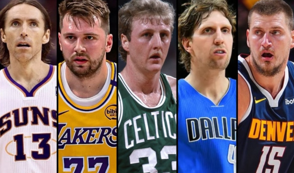 纳什+东契奇+伯德+诺维茨基+约基奇——这套全白人阵容堪称篮球智商与技术的极致融合,却也可能成为防守端的灾难。纳什的灵动组织、东契奇的全面视野、伯德的致命投篮、诺维茨基的金鸡独立、约基奇的内线策应,这套阵容的进攻如水银泻地,足以让任何防守体系崩溃。