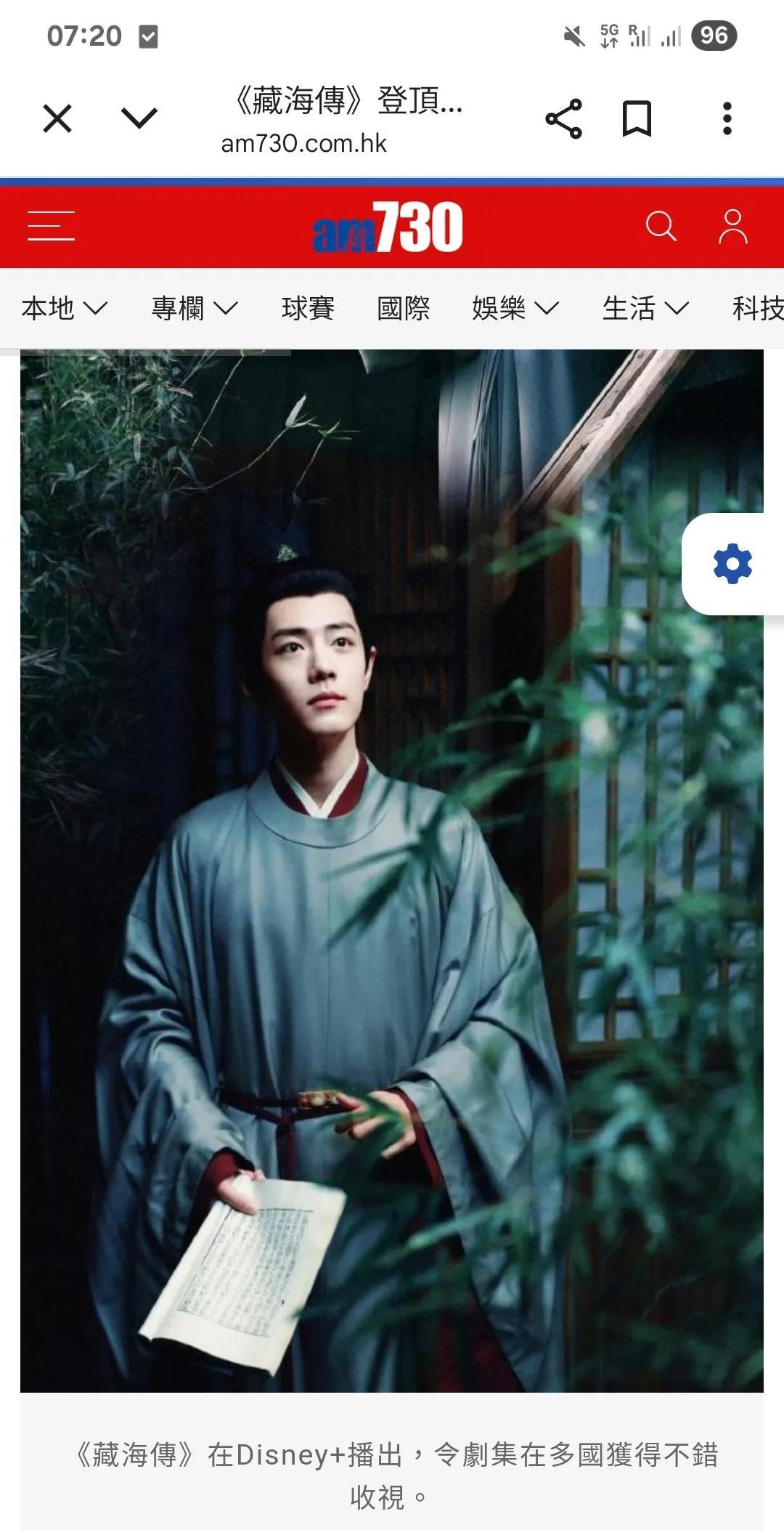 8月21日,香港报纸AM730报道:中国现象级电视剧《藏海传》在韩国串流平台Wavve首日播出就登顶,“展现强大国际影响力”,《藏海传》“成功成为中国跨文化传播一个里程”“东方美学文化符号”。 “串流平台”是香港地区对“流媒体平台”常用的说法 #肖战藏海传火遍全球