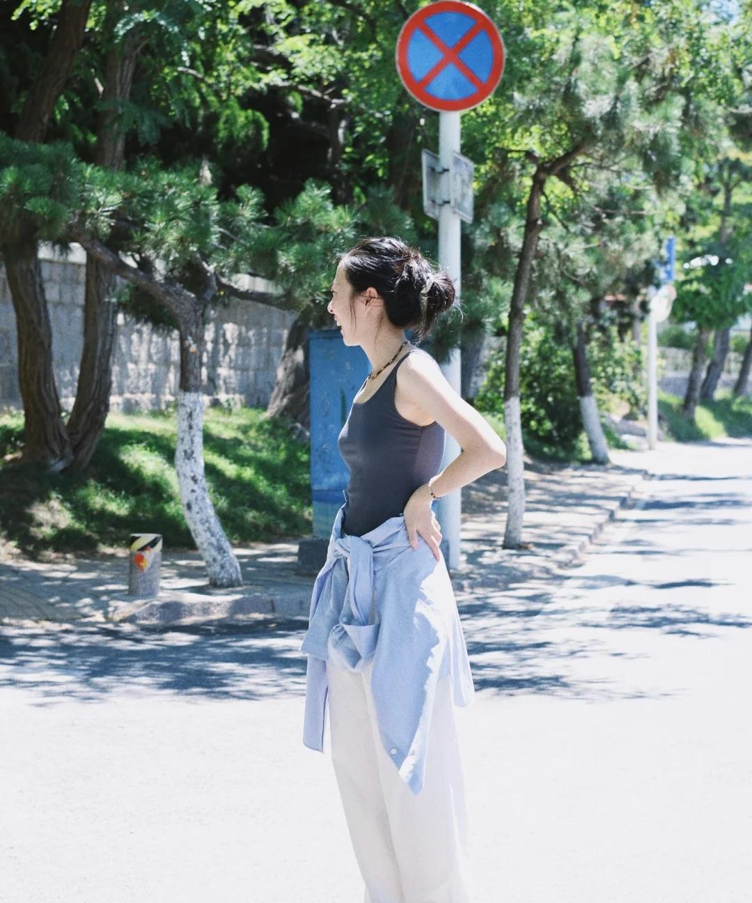 干净气质的蓝白色穿搭,入秋后就这么穿吧! 用浅蓝色的宽松衬衫配小白裤,上下宽松的版型慵懒随意,搭配一只彩色帆布包°,配平底鞋°很适合度假出游,氛围感拉满...