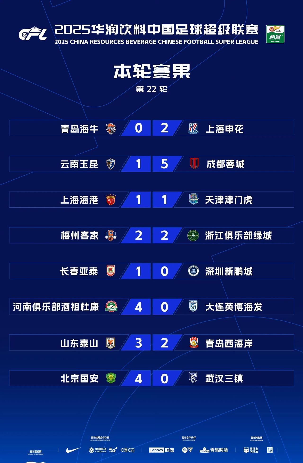 中超排名两头扎堆,前四后四都是2分差距。 昨晚随着北京国安主场4:0大胜武汉三镇,中超第22轮全部结束。第一集团四强中,除上海海港1:1战平津门虎,其余三强都拿到3分,这样上海申花反超暂列榜首,而北京国安拿到大胜净胜球力压海港排名第二,前四差距只有3分。 保级这边,长春亚泰1:0击败深圳新鹏城赢下关键战,这样深圳和梅州都是17分,而亚泰追上海牛都是15分。接下来的最后8轮,争冠保级都是白热化阶段,中超在最后阶段也将逐渐进入高潮。