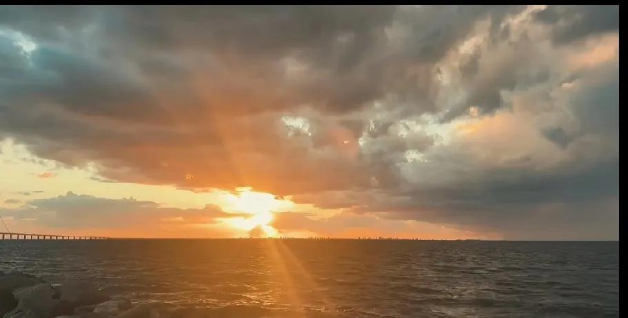 看!她站在水边,城市灯火、温柔暮色相伴,追逐热爱的人,也追上了属于自己的那片夕阳