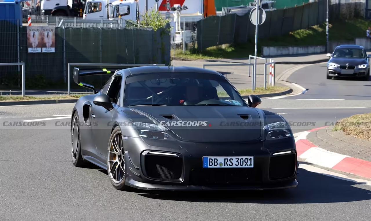 保时捷又来搞情怀杀了! 今天CarScoops曝光纽北测试的新原型车,设计直接梦回80年代—— 融合经典“斜鼻”911基因与Manthey性能套件狠活[吃瓜群众] 今年5月保时捷已悄悄注册“Porsche Flachbau”和"Flachbau RS"商标,这次原型车路测图进一步实锤:窄头灯+方形进气口/NACA进气道引擎盖/大尾翼扩散器,活脱脱把80年代赛道魂塞进现代壳子。 设计融合Manthey版GT2 RS套件特征,是官方特别版还是Manthey改装新作?但“斜鼻基因”是真的藏不住了! 你们觉得这是致敬传奇还是又一波“复古圈钱”套路?评论区聊聊~