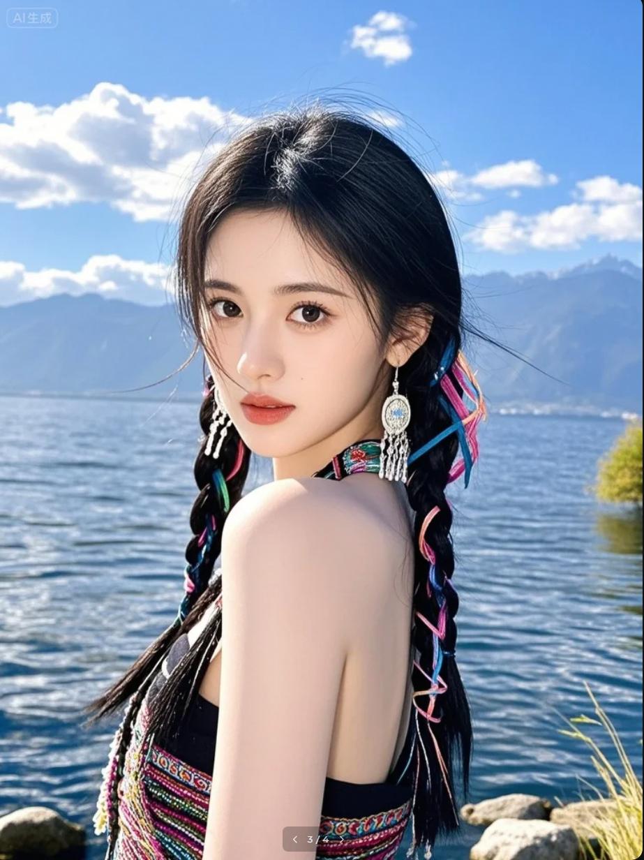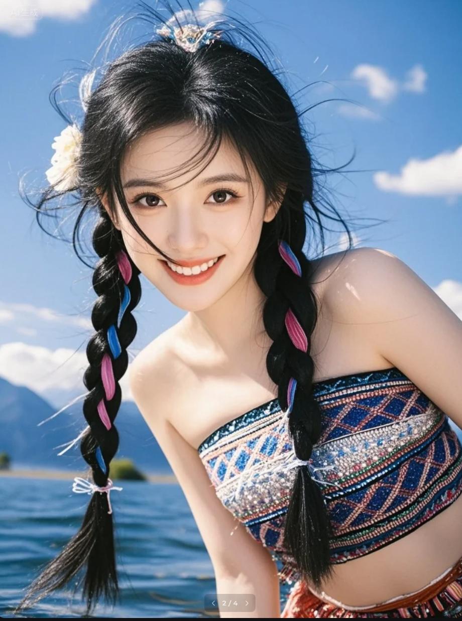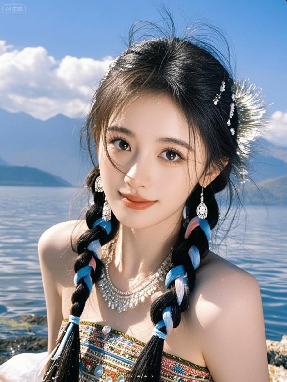 纳西族少女头戴鲜花,对着镜头俏皮眨眼:“要笑哦!”