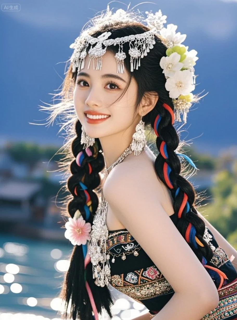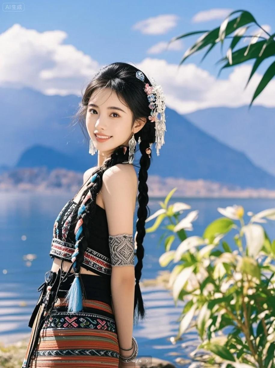纳西族女孩举起小镜子反光,调皮地说:“补光神器!”