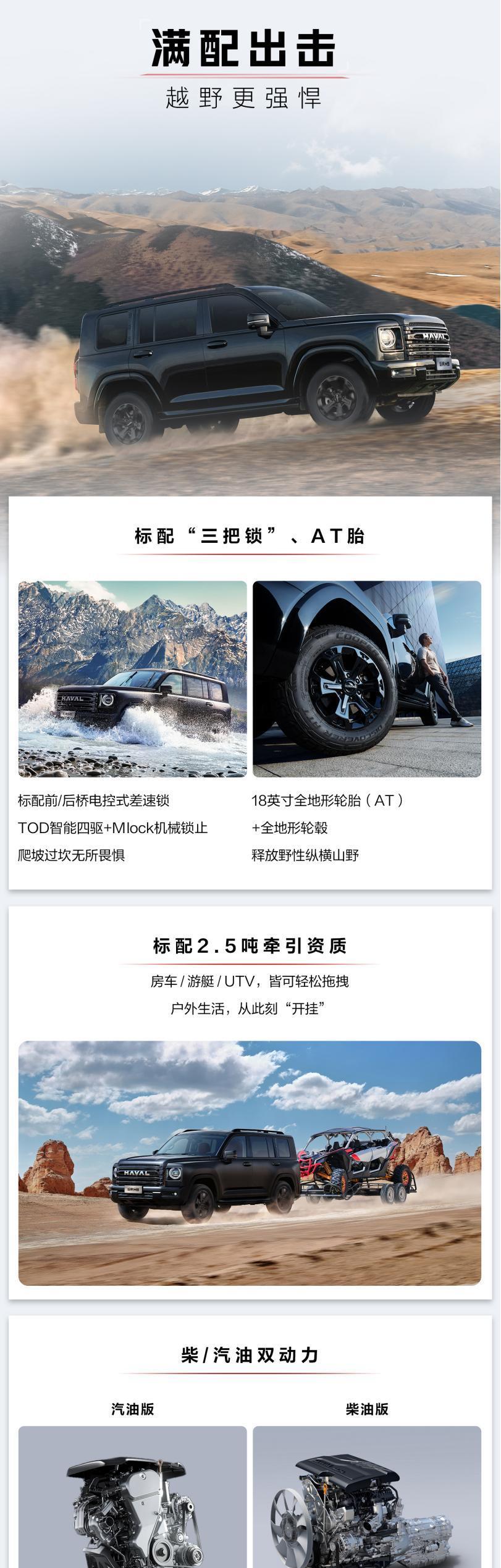 二代哈弗H9勇士版上新了,有2.0T汽油、2.4T柴油两个版本,限时价21.49