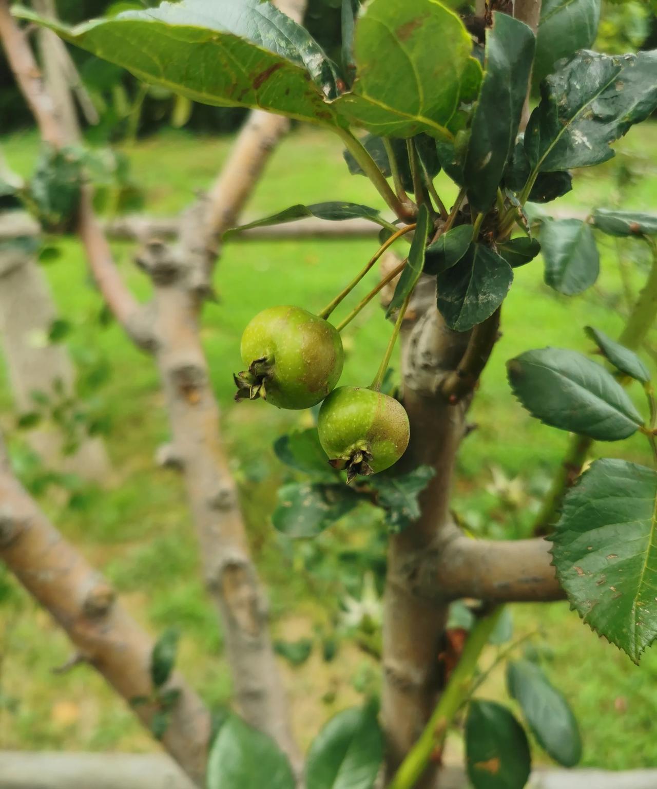 今天仔细看看院子里的花花草草,发现树已经结了果实,感觉是海棠吧(图一图二),它的