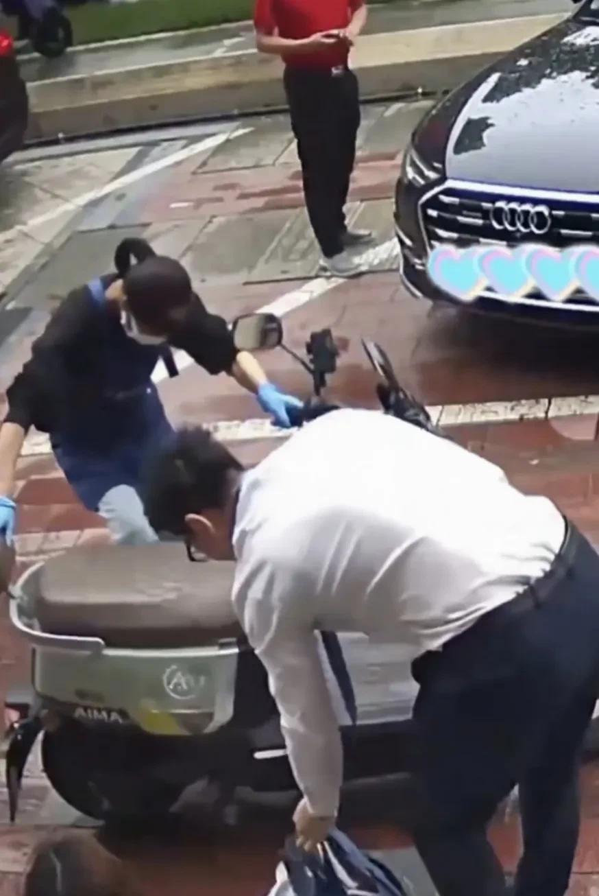 #视频转图文大赛#女子骑电动车摔倒嫌鬼探头过街男子不扶!红衣男子鬼探头急横穿过街