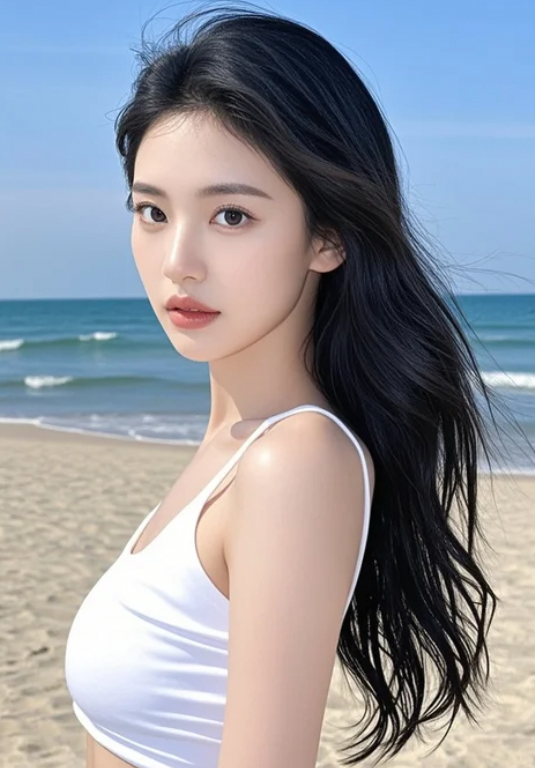 沙滩自拍ing,海风撩发,你猜浪花说了什么悄悄话?