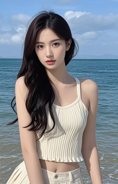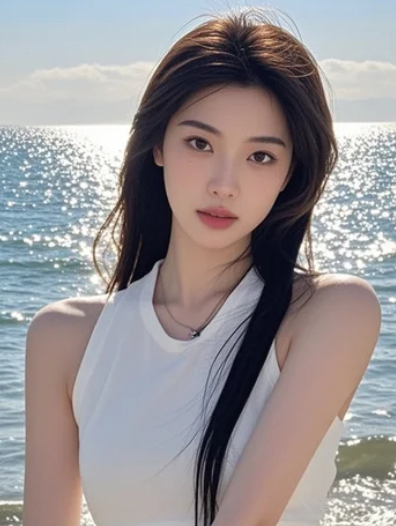 沙滩自拍ing,海风撩发,你猜浪花说了什么悄悄话?