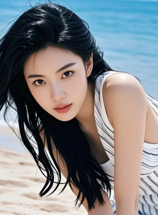 沙滩自拍ing,海风撩发,你猜浪花说了什么悄悄话?