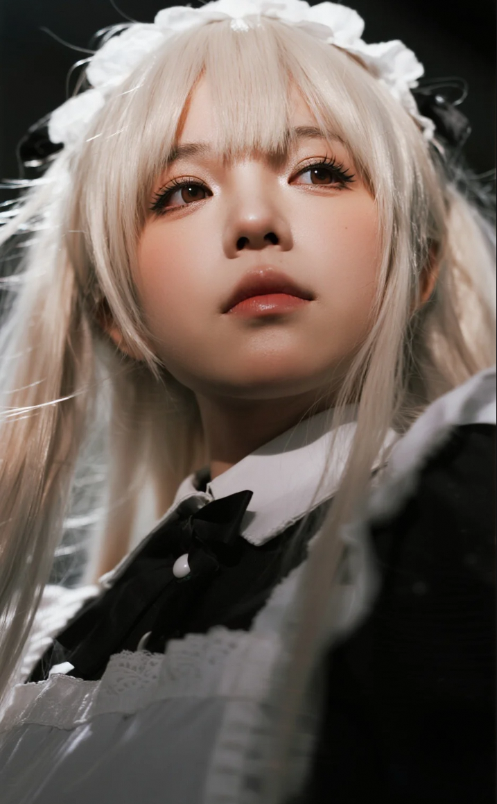 中长发如光垂落,樱桃小嘴微启,海蓝背景衬出她的高贵与秀气!
