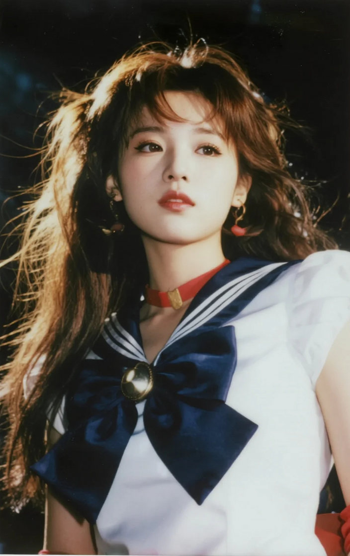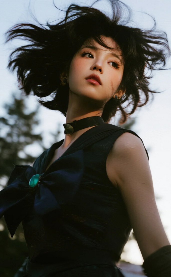中长发如光垂落,樱桃小嘴微启,海蓝背景衬出她的高贵与秀气!