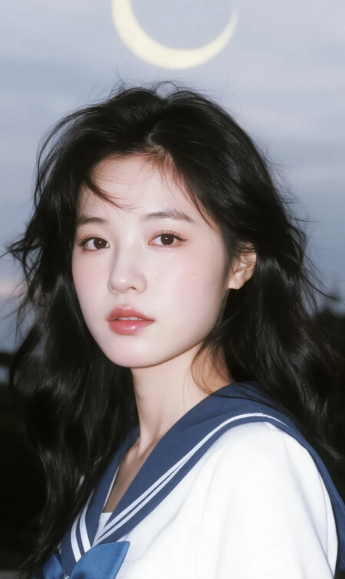 中长发如光垂落,樱桃小嘴微启,海蓝背景衬出她的高贵与秀气!