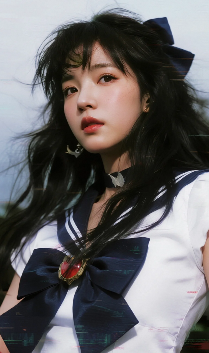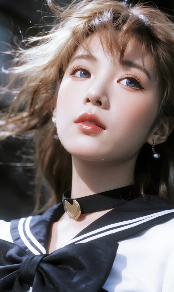 中长发如光垂落,樱桃小嘴微启,海蓝背景衬出她的高贵与秀气!