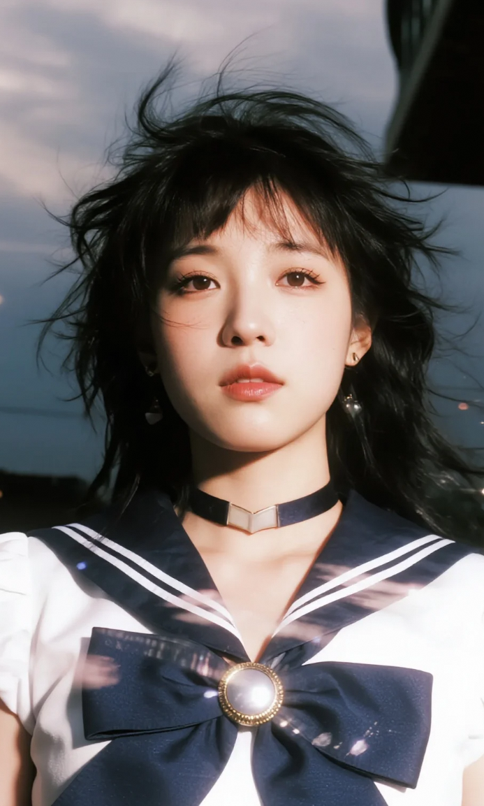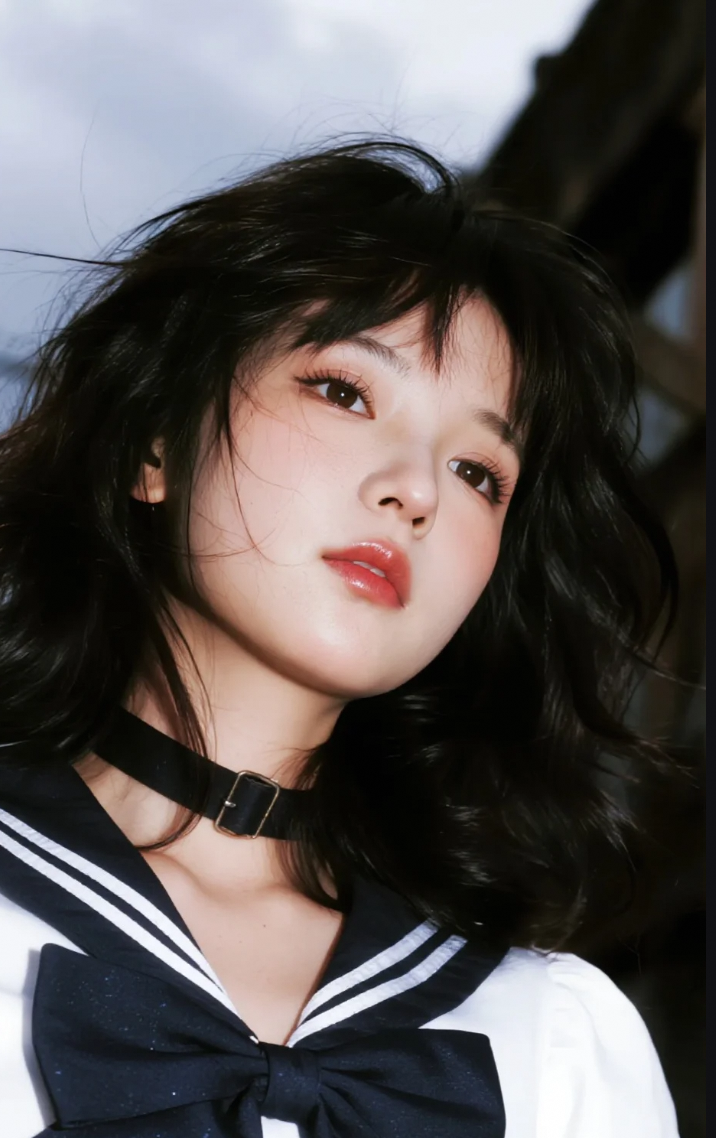 中长发如光垂落,樱桃小嘴微启,海蓝背景衬出她的高贵与秀气!