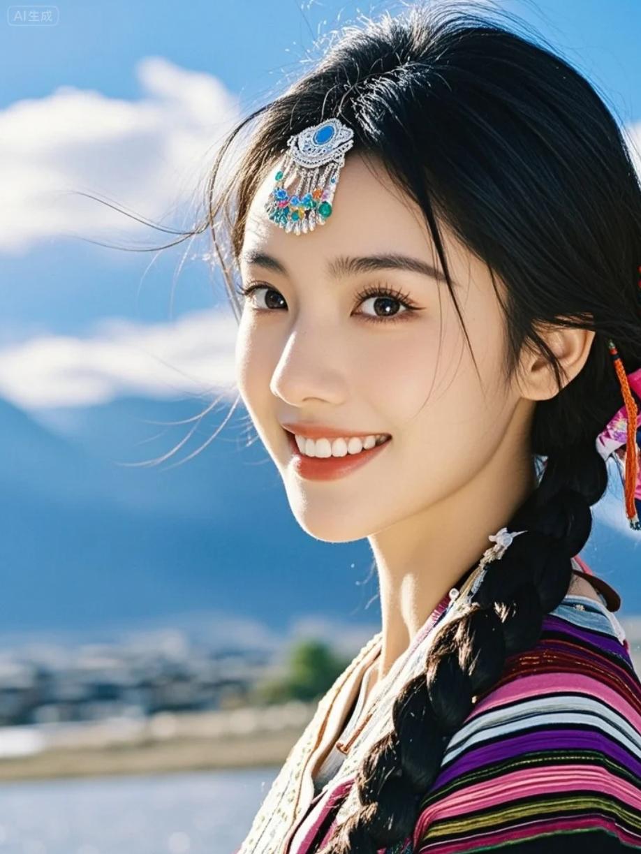 湖畔边的双麻花辫,倒影讲述着她的故事