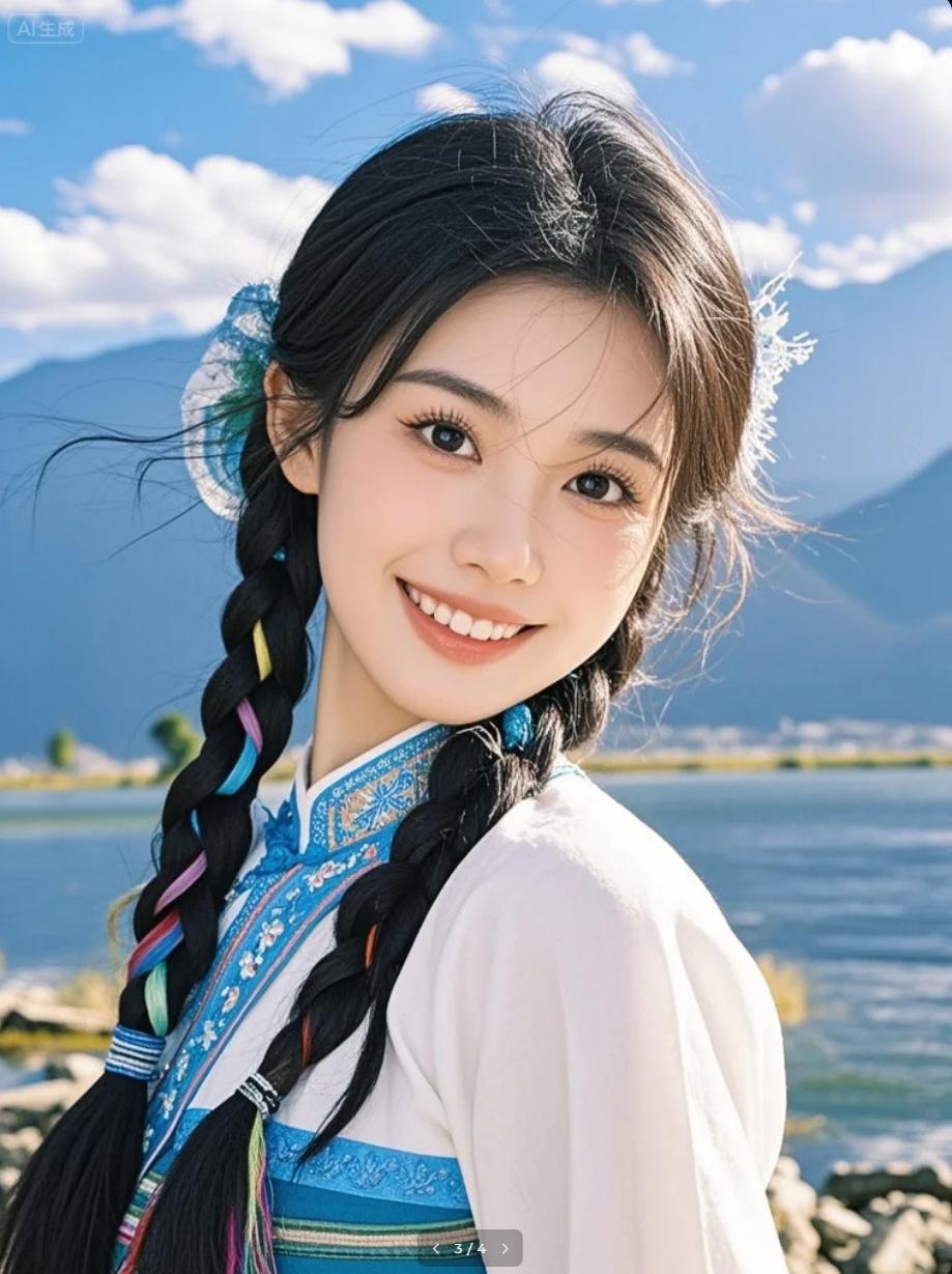 冬季雪地里,双麻花辫少女的纯净笑颜