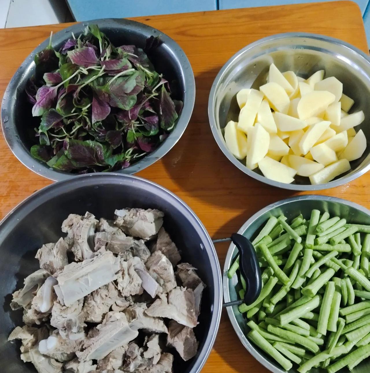 今晚九点多才吃晚饭,一个土豆豆角烧排骨,一个炒红苋菜。一天就吃这一顿。本来6点多