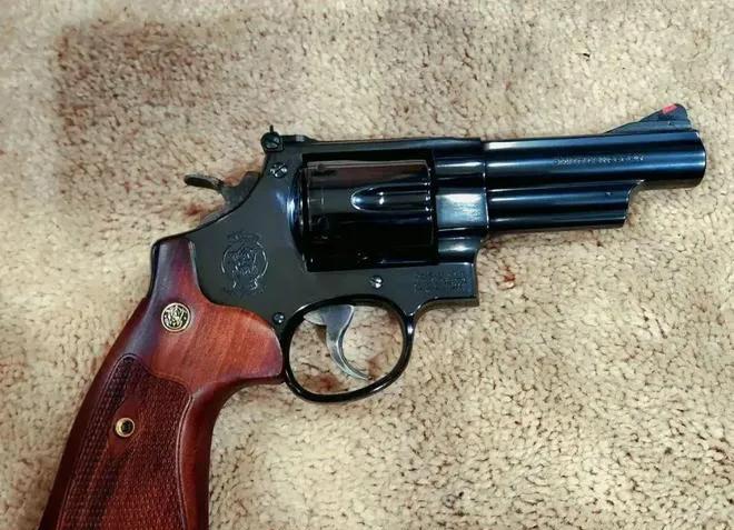 历史悠久的科尔特式左轮手枪,它的弹仓是个轮子,而且装填子弹时向左划动,故称左轮手