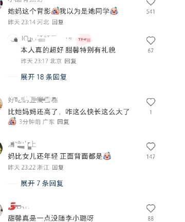 网友北京偶遇李小璐甜馨 网友北京偶遇李小璐甜馨去走秀,李小璐灰色卫衣套装造型和金发的甜馨站在一起,就像两姐妹。大家都夸甜馨长得像妈妈一样好看,又有礼貌。