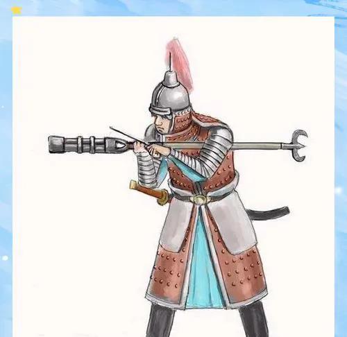 步枪鼻祖,三眼火铳,出现于明朝初期,使用熟铁锻造卷打而成,外形象竹节状三管绑在一起,每根管子外侧留有小孔,使用时选装填火药,然后塞满钢珠,在小孔处装上火绳。使用时可点燃火绳继可轮番发射,在后端装有木质握把,长短不等,由于装填火药太慢没有发展前景,而退出历史舞台。