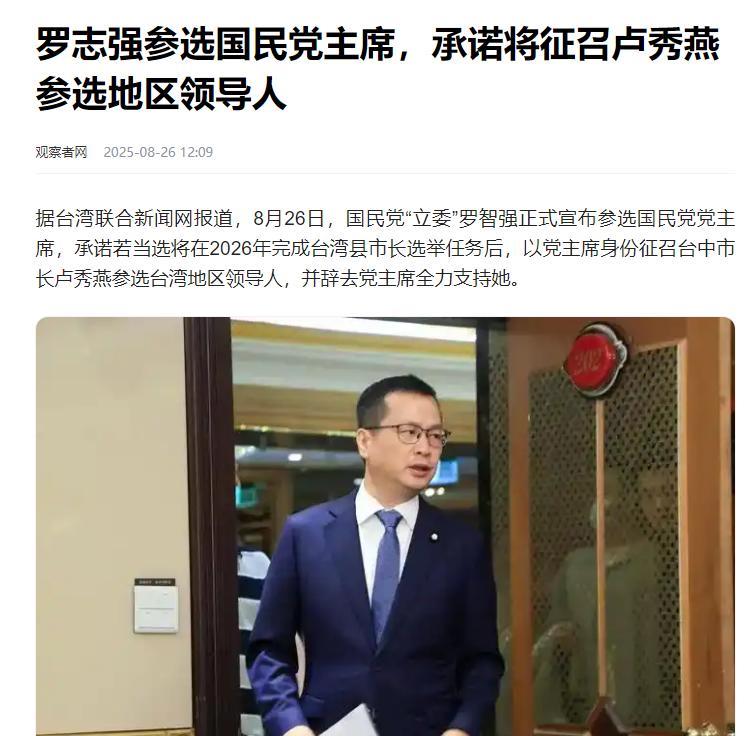 果不其然,郑丽文这个国民党统派,竞选党魁时被亲美派盯上了,半道突然冒出个搅局的!马英九这边的心腹罗智强,之前反罢免那事儿上啥功劳都没有,现在却突然宣布要争国民党党魁!台湾又显露出国民党内斗的苗头,这么看,哪怕到了 2028 年台湾地区领导人大选,国民党也还是没希望! 说真的,国民党2028想赢台湾地区领导人选举?没门!不是对手强,是他们一到关键就窝里斗,根本不管老百姓。 就说这次党魁选举,马系推罗智强出来挡郑丽文——罗智强没干过啥实事,喊着“战斗蓝”,问他咋解决低工资答不上,问跟大陆咋合作就绕圈,一点干货没有。 这招顶多给郑丽文添点麻烦,改不了国民党爱内斗的毛病。 他们为啥怕郑丽文?怕她捅破“统一”的窗户纸。以前国民党靠“模糊路线”混选票,不得罪美国又哄老百姓。 现在郑丽文不绕弯,直接说“台湾人也是中国人”,还跟年轻人讲实在的:跟大陆做跨境电商,比当便利店店员挣得多、学本事。她懂老百姓想听啥,这话多戳心。 可国民党老领导容不下她。卢秀燕说参选又退,找借口“应付美国关税”,其实怕丢亲美派的票。 朱立伦被问咋看统一就打哈哈;马英九夸她有勇气,又扯“九二共识各自表述”——说到底是怕没法再模糊混日子。 现在台湾人不管蓝绿,就想物价降、工资涨、孩子好就业。台北蛋饼从25涨到35,年轻人工资还是3万多新台币,买房像做梦。 大家知道民进党搞对抗没好处,可国民党除了内斗,也没给啥实在盼头。 说到底,政党眼里只有权力斗争、不解决老百姓难处,再响的口号也没人理。 大家选的是能过好日子的人,不是只会内耗的“斗派”——国民党拎不清这点,别说2028,以后选举都是白忙活。