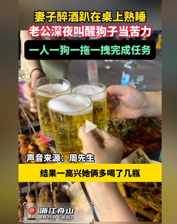 浙江舟山,妻子和闺蜜在家喝酒至深夜,老公上厕所见妻子醉酒睡在桌子上,叫不醒还抱不动,他无奈心生一念头,结果家里狗子意外火了! 浙江舟山有个普通家庭,发生了一件让人哭笑不得的事。 有一天晚上,妻子的闺蜜来家里做客。 两人好久不见,聊得特别投机,就拿出酒来边喝边聊。 不知不觉就到了深夜,两人都喝得有点多。 丈夫第二天还要早起上班,就先休息了。 半夜里,丈夫起来上厕所,发现客厅的灯还亮着。 他走过去一看,妻子已经趴在桌子上睡着了,闺蜜也靠在沙发上睡得很沉。 丈夫轻轻推了推妻子,想叫醒她回床上睡。 可是妻子睡得太沉,只是嘟囔了几句又继续睡了。 丈夫又想把她抱回卧室,可是试了几次都抱不动。 妻子睡得很沉,全身软绵绵的,加上丈夫自己也刚睡醒,使不上劲。 他看着趴在桌上的妻子,又看看睡在沙发上的闺蜜,一时不知道该怎么办。 这时,他看到了趴在角落里的狗。 这只狗平时就很通人性,经常帮着叼拖鞋、拿报纸。 丈夫突然有了主意。 他找来一条床单,把单子铺在地面,让妻子从凳子上顺势的躺在单子上,然后将一角递到狗子嘴里,自己拉上另一角,然后他轻声招呼狗狗往卧室方向走。 狗狗很通人性地慢慢往前走,借着这个力道,丈夫终于把妻子挪进了卧室。 整个过程虽然费劲,但总算顺利。 丈夫把妻子安顿好,又去客厅看了看闺蜜,给她盖了条毯子。 这时他才发现,刚才的一幕都被家里的监控摄像头拍下来了。 第二天,丈夫看着监控录像觉得很有意思,就分享给了几个要好的朋友。 没想到朋友们都觉得很有趣,一个个又转发给了自己的朋友。 就这样,这段视频很快就在当地传开了。大家都说这只狗真通人性,能帮主人解决问题。 还有人开玩笑说,这狗比有些人还懂事。 妻子第二天酒醒后,听说这件事也很不好意思。 不过看到大家这么喜欢她家的狗,又觉得挺开心的。 她和丈夫说,以后可不能这么喝酒了,不仅自己难受,还给别人添麻烦。 丈夫倒是很豁达,说朋友聚会高兴喝点酒很正常。 这件事看起来平常,却引起了不少人的共鸣。 夫妻之间的相处,有时候不需要太多言语,一点小智慧、小幽默,就能让生活变得轻松有趣。 家里的宠物狗也因此成了“小帮手”,给家庭增添了不少欢乐。 生活中难免会有各种小插曲,重要的是彼此包容和理解。像这位丈夫,没有因为妻子喝醉而生气,反而用轻松的方式处理了问题。这样的态度,值得很多人学习。 家庭生活就是这样,有笑有泪,有忙有闲,但只要心里装着对方,再难的事也能变得简单。 最后,这只意外走红的狗,也成了他们家一个美好的记忆。 生活中的小趣事,往往最能体现人与人之间的情感,也最能带给人们温暖和快乐。