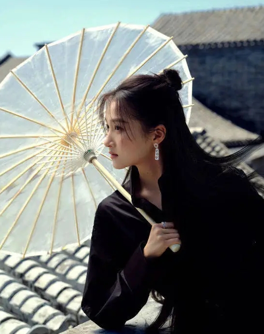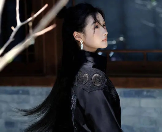 关晓彤穿黑色新中式服饰飒爽清冷。