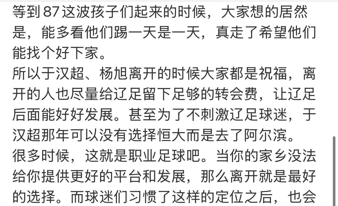 媒体人赵震今天发了一篇长文,讲述了辽足这一路的不容易。除了肇俊哲外,辽足留不住任何球星, 不管是李金羽,张玉宁还是肖战波。 到了87这波,辽足球迷的心态已经变了,知道于汉超和杨旭肯定是要走的。 接下来的辽宁铁人能够翻转这悲情的命运吗?