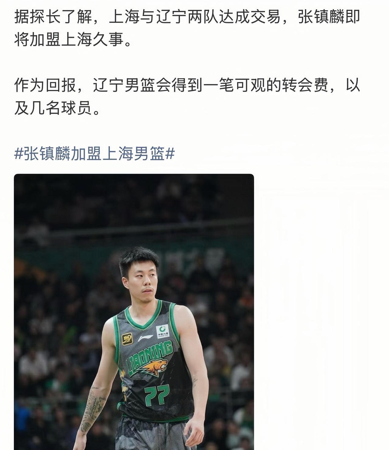 张镇麟加盟上海男篮,他也可以被交易吗? 看不懂辽宁男篮的操作了,张镇麟也是可以交易的吗?不是重点培养的对象吗? 据媒体人赵探长透露,上海与辽宁两队达成交易,张镇麟即将加盟上海久事。 作为回报,辽宁男篮会得到一笔可观的转会费,以及几名球员。 看来上海男篮是下了血本了,张镇麟都可以运作过来!够牛的!这下CBA要大结局了吗? #头号创作者激励计划# #张镇麟加盟上海男篮#