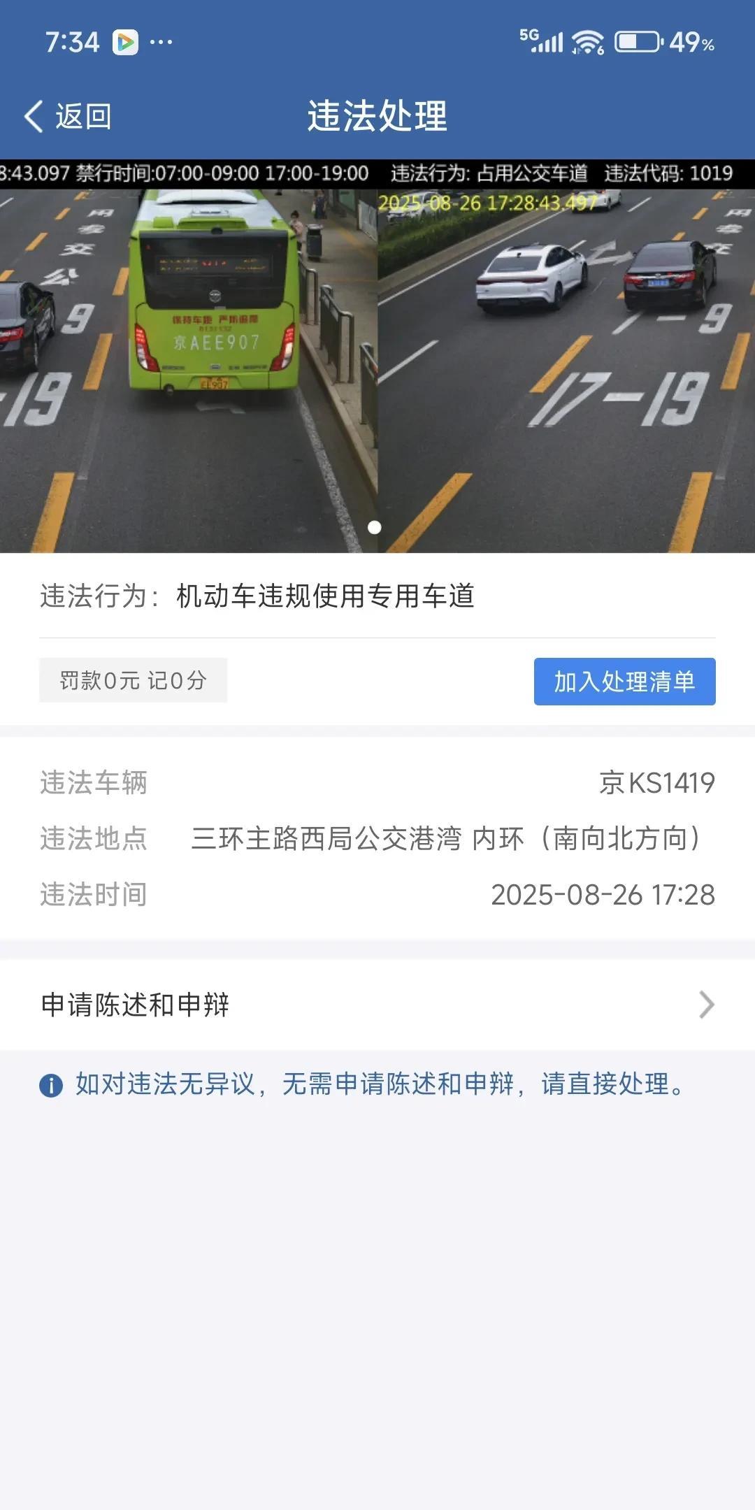 头一次走公交车道违章不扣分不罚款,北京太有爱了。 昨天去六里桥桥南接客人,西三环从南向北主路行驶出辅路,走了一小段公交车道,最多50米,西三环的探头还真密集。 以前走公交车道是200元3分,现在太人性化了,打开12123APP学习一下交通法规视频就OK了。