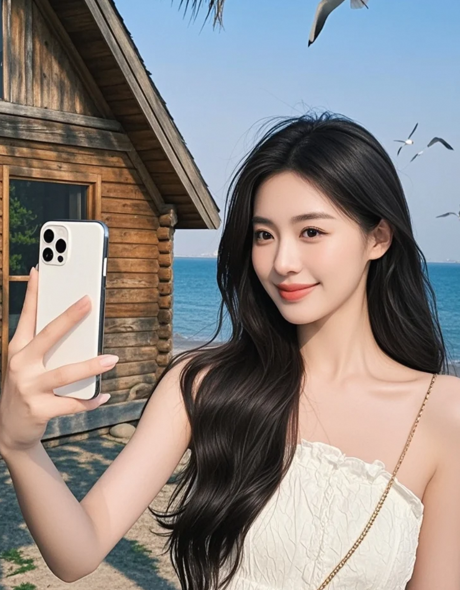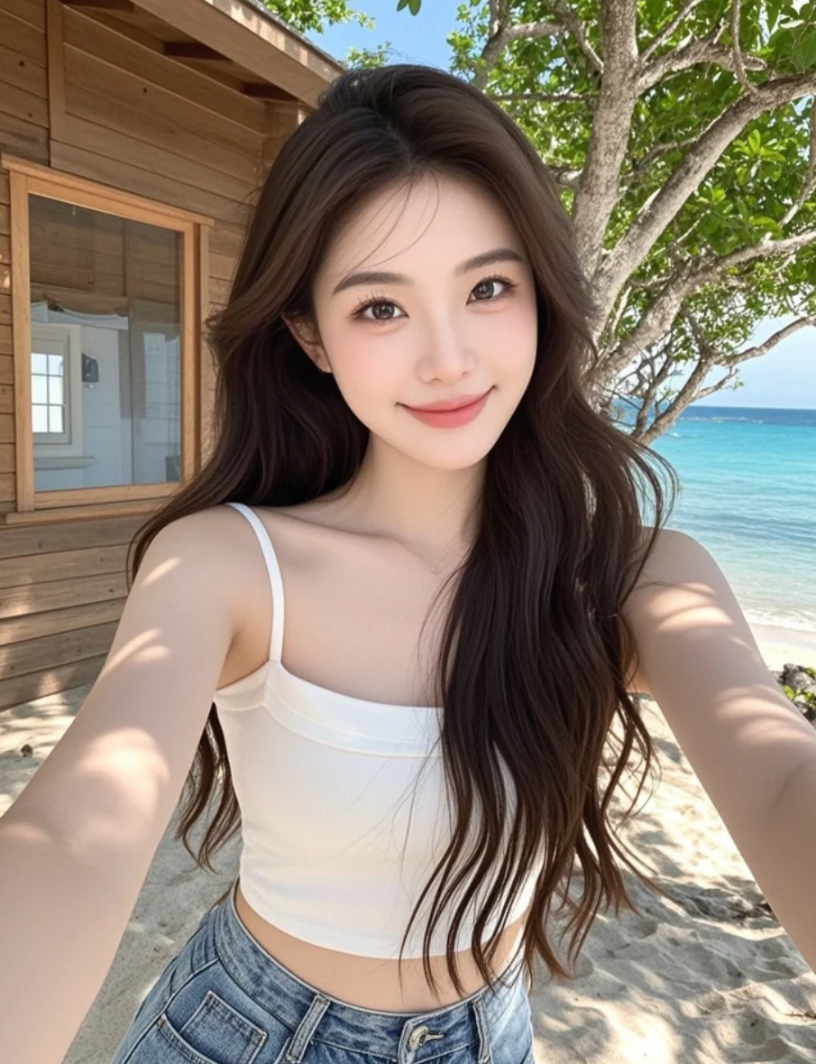 嘘——别笑!第一次在海边自拍紧张死了~