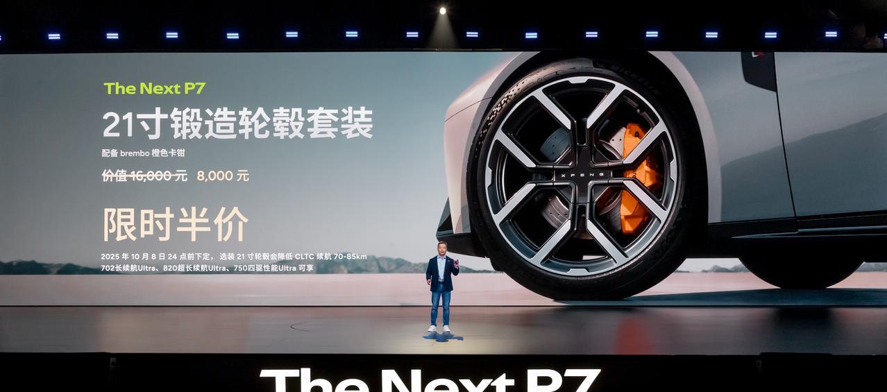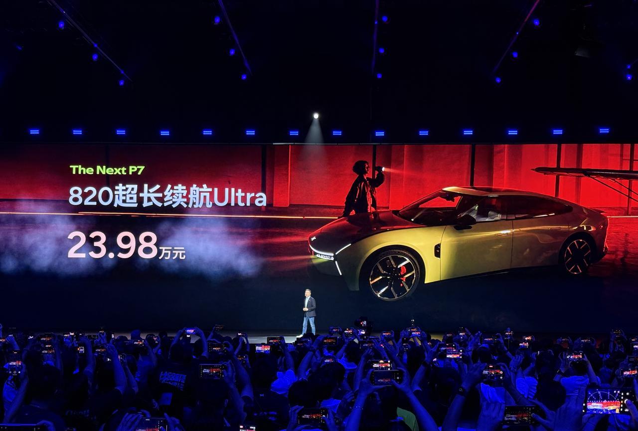 #全新小鹏P7全系Ultra# 8月27日,全新小鹏P7换代上市,推出4款车型:702长续航Ultra 21.98万元、820超长续航Ultra 23.98万元、750四驱高性能Ultra 25.98万元、750四驱鹏翼Ultra 30.18万元;赛道套装1.6999万元选装。 全新小鹏P7外观采用XMART FACE设计,车头1.4 m光翼贯穿灯,风阻系数仅为0.201。其长宽高分别为5017×1970×1427 mm,轴距3008 mm,掀背尾门提供1001 mm开口,主动扰流板极速下压力900 N。车内配备三辐运动方向盘+15.6英寸三轴灵动屏+87英寸AR-HUD,另外提供3颗图灵+1颗高通8295P,算力打造2250 TOPS,9月OTA上车VLA大模型。 全新小鹏P7基于全域800V架构打造,提供后置270 kW单电机版本和四驱437 kW双电机版本,对应74.9/92.2 kWh电池,CLTC续航702/820/750 km,10分钟颗补能525 km。底盘方面,全新小鹏P7配备双腔空悬+CDC,前双叉臂后五连杆,50:50配重,零百3.7 s,浙赛1:38.767圈速50万内最快。【来自懂车帝车友圈】