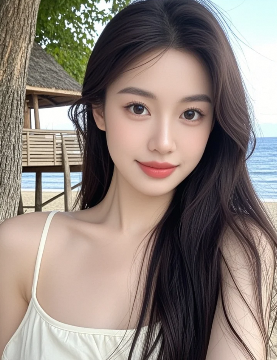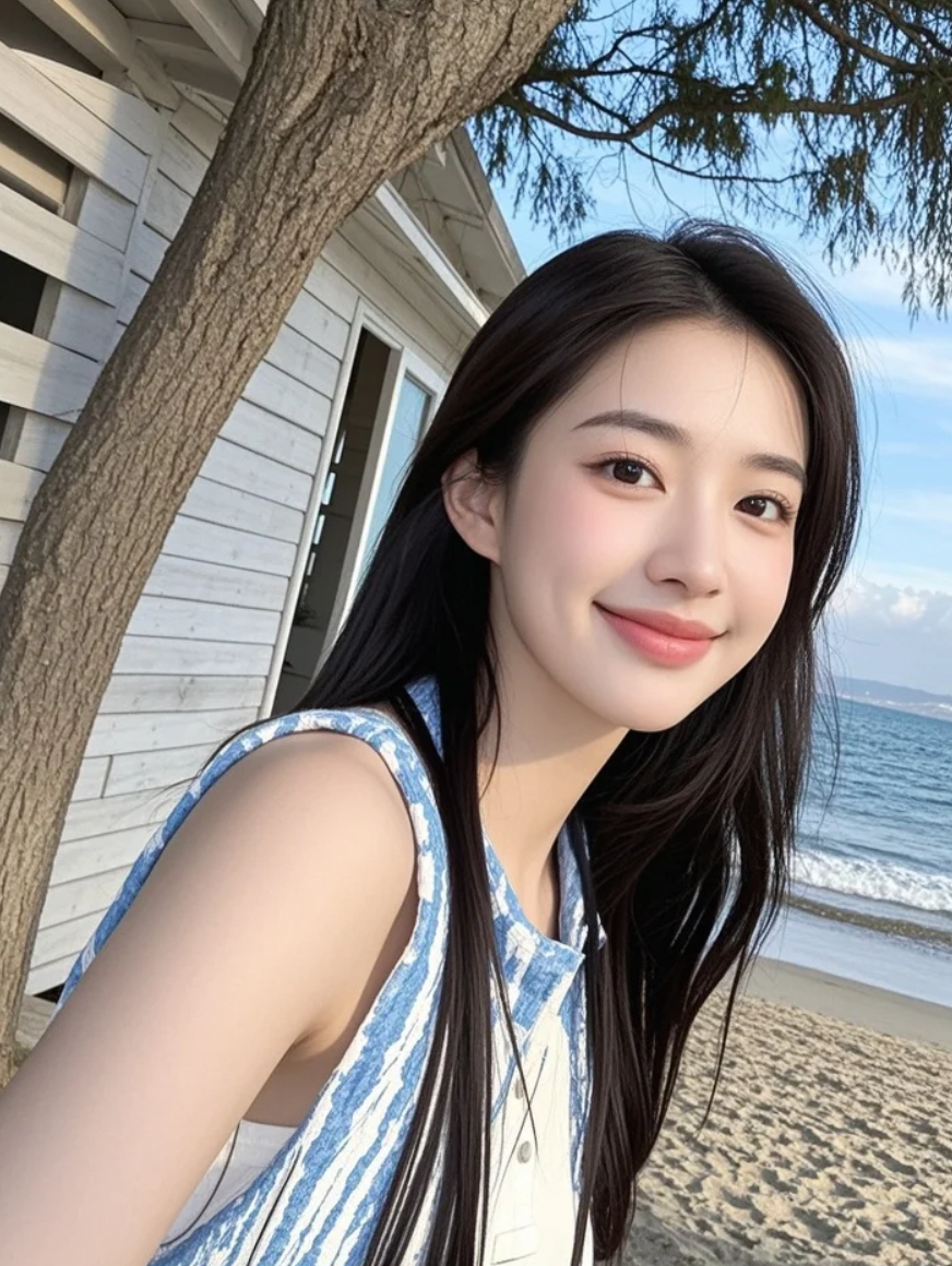 嘿,我的自拍好看吗?海风把头发吹乱啦~