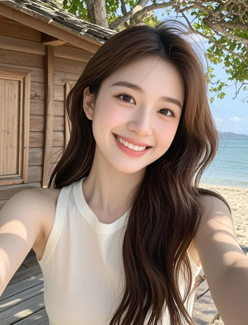 碧波为幕,发丝为诗,共写此刻浪漫?