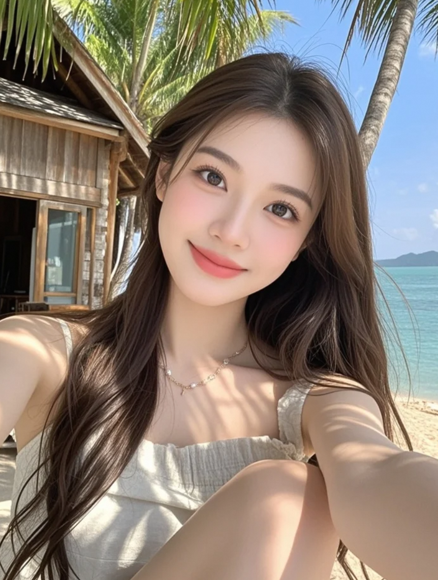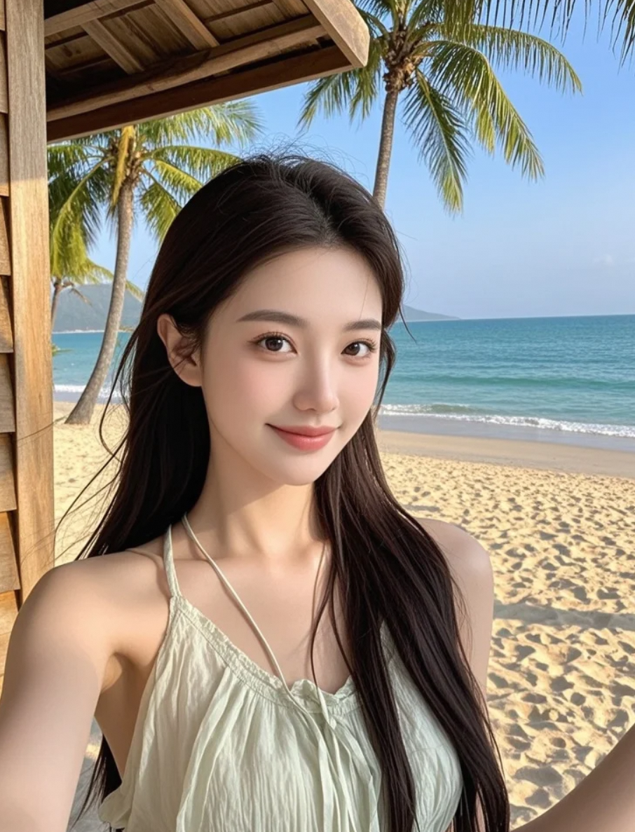 碧波为幕,发丝为诗,共写此刻浪漫?