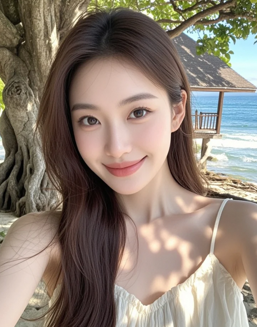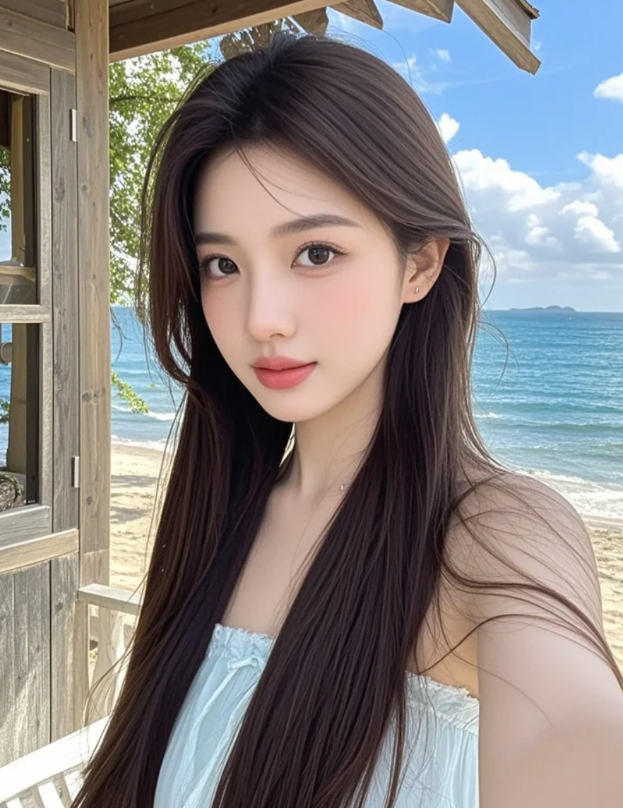 嘿,我的自拍好看吗?海风把头发吹乱啦~