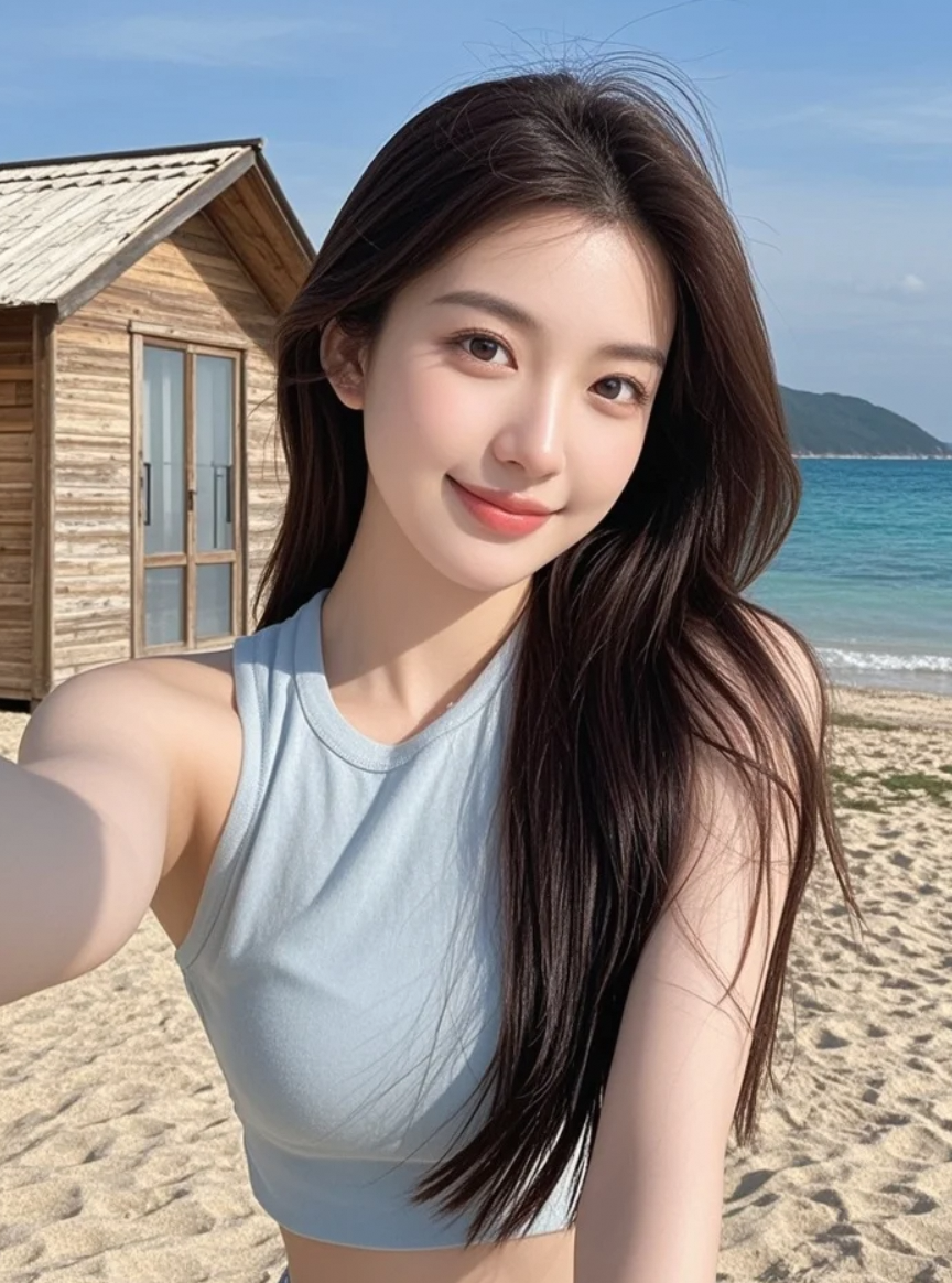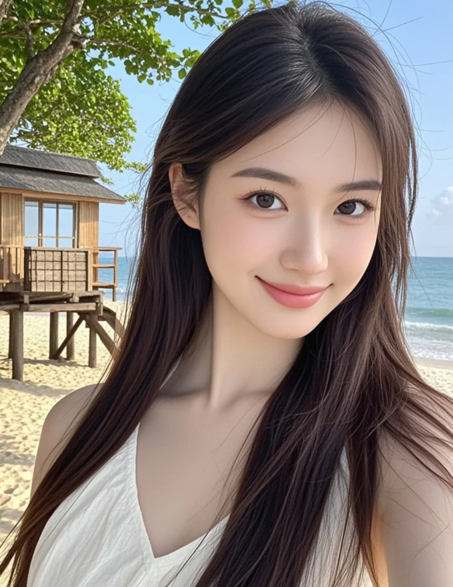 碧波为幕,发丝为诗,共写此刻浪漫?