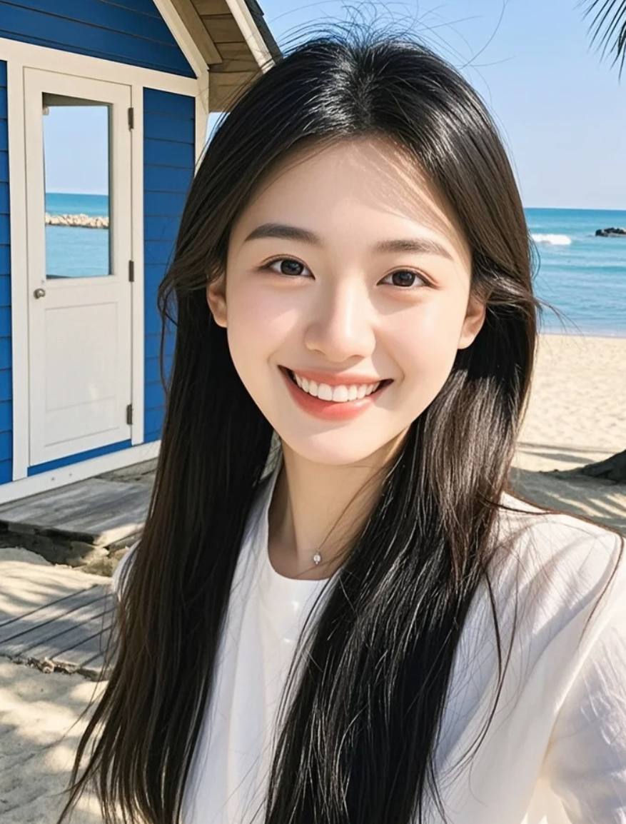 碧波为幕,发丝为诗,共写此刻浪漫?