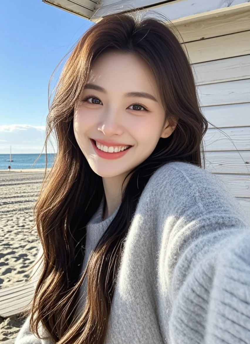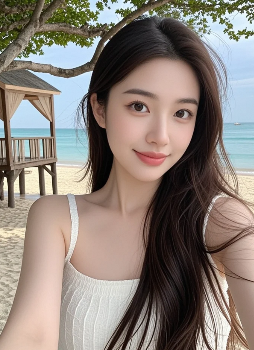 碧波为幕,发丝为诗,共写此刻浪漫?