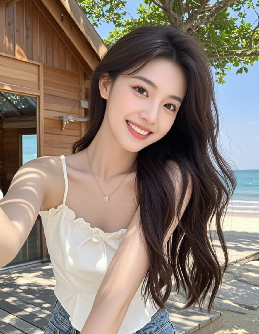 碧波为幕,发丝为诗,共写此刻浪漫?