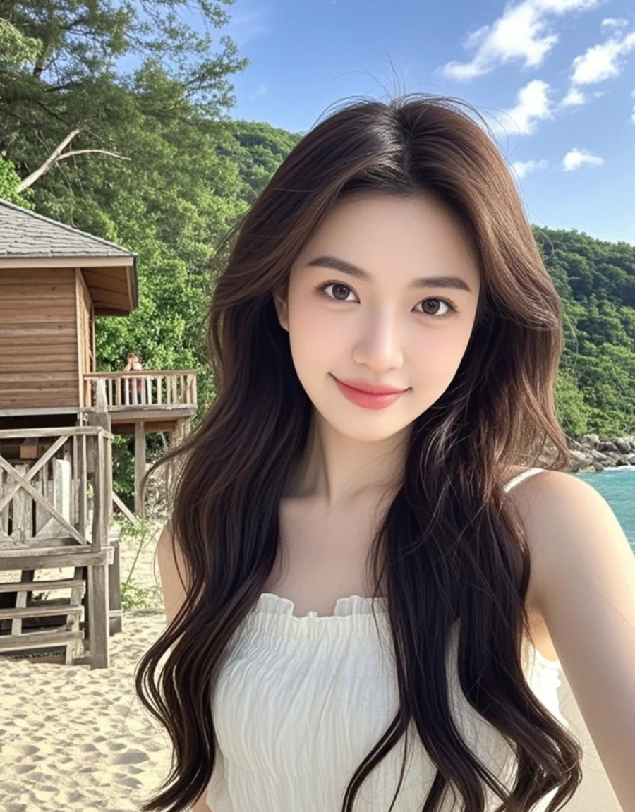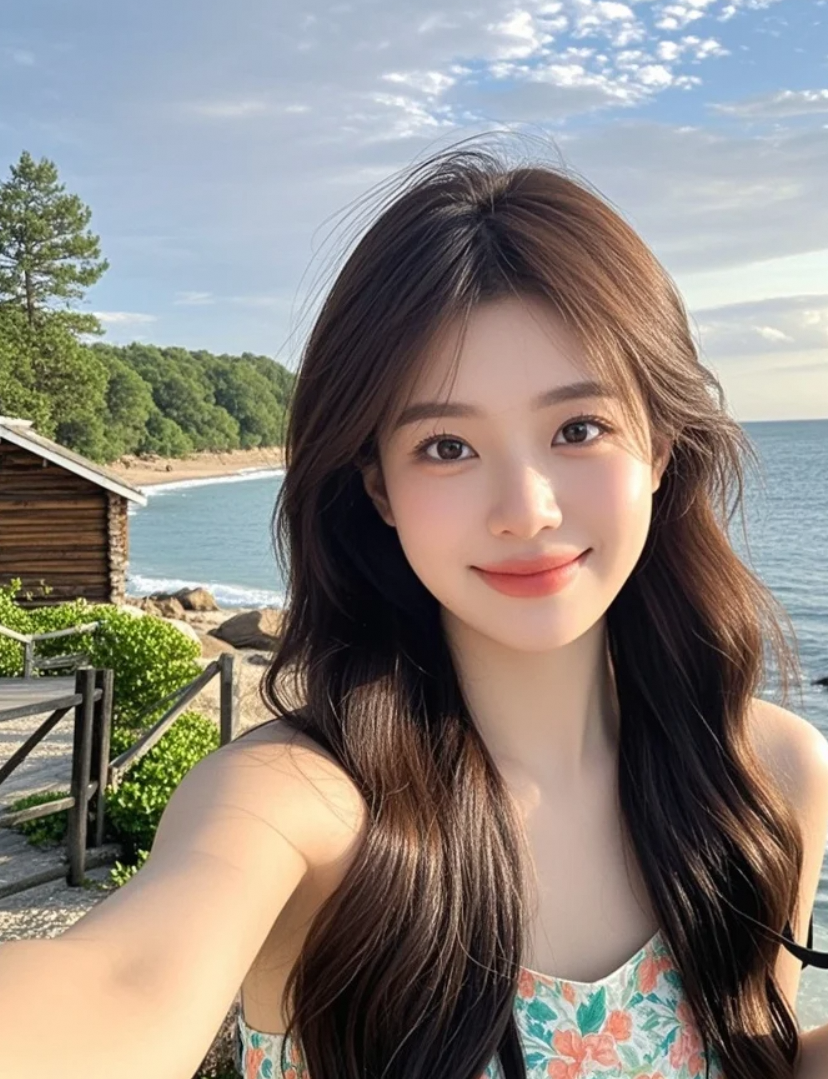 碧波为幕,发丝为诗,共写此刻浪漫?
